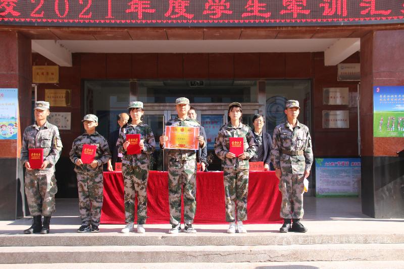 校领导为优秀教官,优秀军训连队,优秀标兵颁奖。