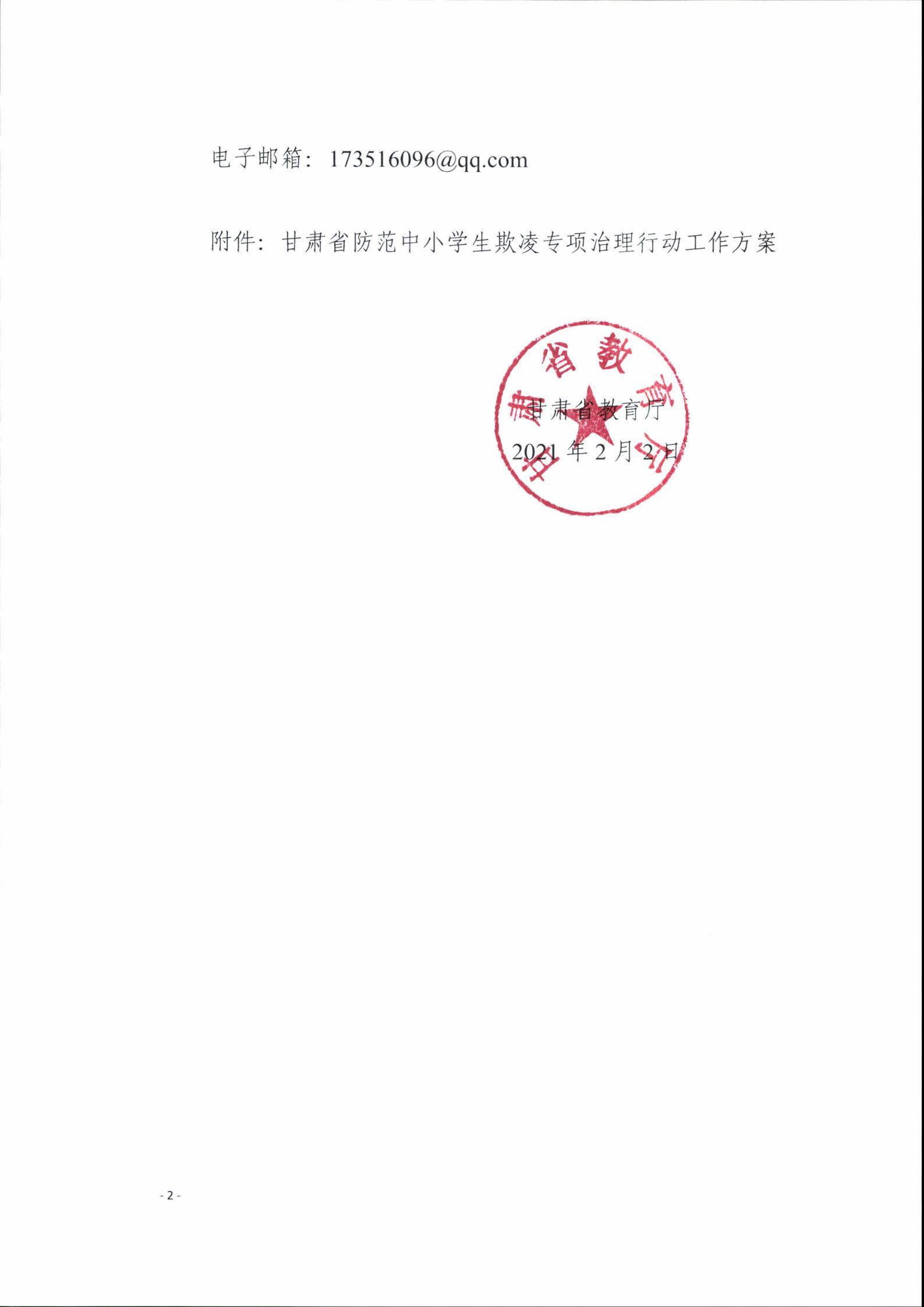 甘肃省教育厅关于印发《甘肃省防范中小学生欺凌专项治理行动工作方案》的通知