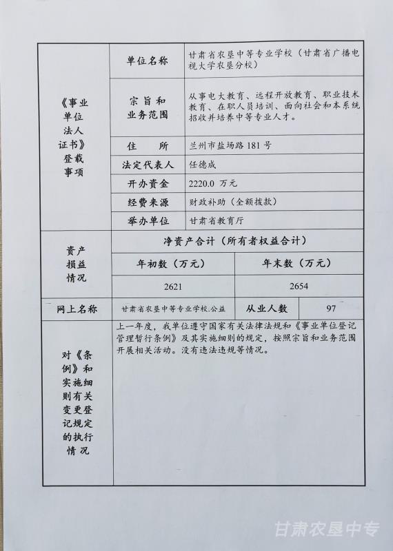 事业单位法人年度报告书