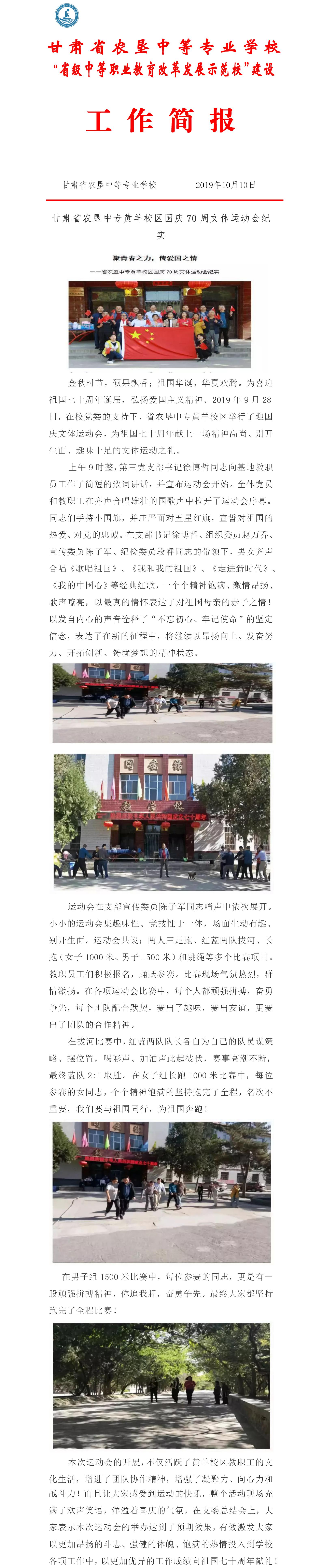 甘肃省农垦中专黄羊校区国庆 70 周文体运动会实