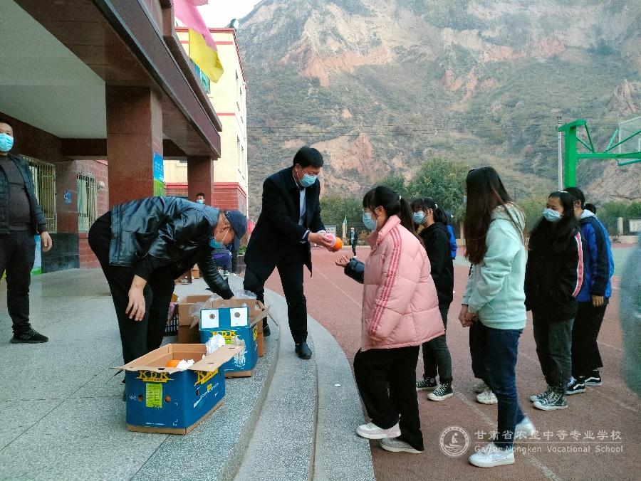 为进一步做好疫情期间我校学生的生活保障工作,改善学生膳食营养,增强学生身体素质,保证学生身体健康。11月5日下午,学校为全校学生发放时令水果,充分体现了学校对莘莘学子的关怀关爱。